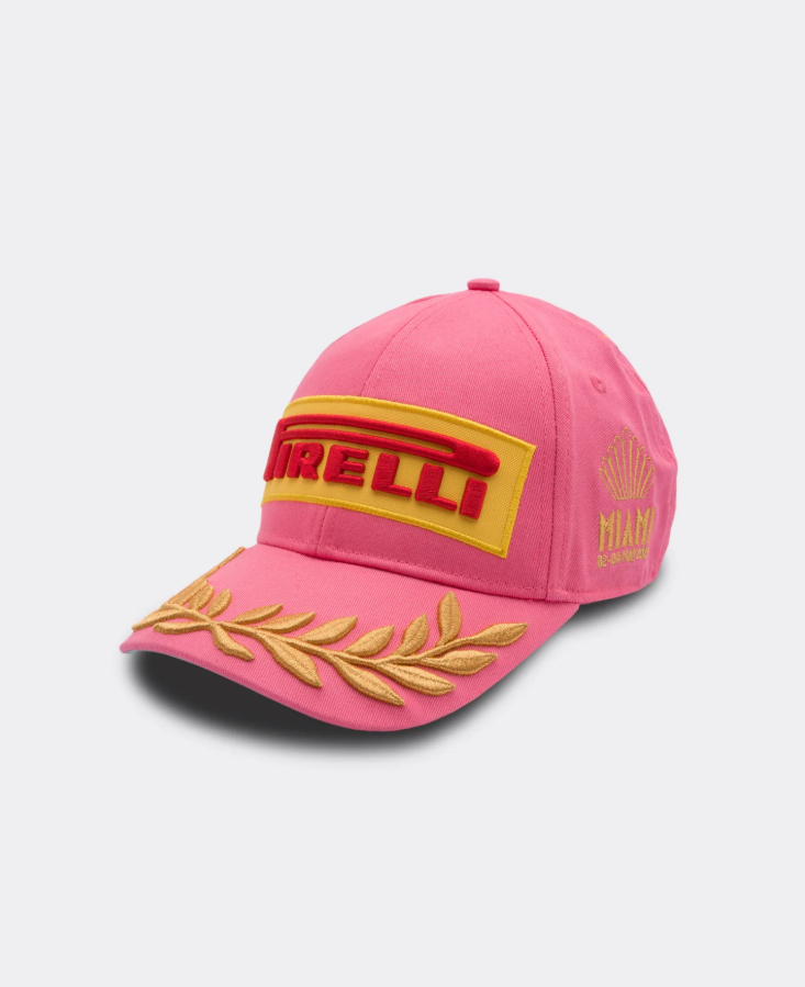 De Pirelli Podiumpet - Special Edition Miami is een gedurfd eerbetoon aan een van de meest levendige stops van de Formule 1® op de kalender. Doordrenkt met roze accenten en turquoise accenten en een onderbill, weerspiegelt het de energie van het Hard Rock Stadium-circuit® - snel, opvallend en vol spektakel. Gouden stiksels accentueren het geborduurde schrift, wat verwijst naar het prestige van het podium, en het klassieke Pirelli-logo straalt gedurfd F1-erfgoed® uit. Gebouwd voor raceweekenden maar ontworpen om ver buiten de paddock op te vallen, vangt deze must-have pet de essentie van Miami's unieke mix van snelheid, stijl en showmanship.