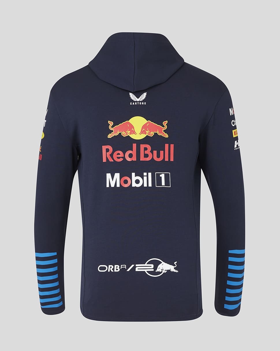 De hoody met rits hoort bij de officiële teamline collectie van Oracle Red Bull Racing van het Formule 1 seizoen 2024. Alle graphics van dit seizoen zijn op het vest verwerkt. In dezelfde collectie is er ook een t-shirt, hoody, vest, hoody, gilet en regenjas. De collectie wordt gemaakt door Castore. De collectie valt op maat/iets kleiner. Bestel bij twijfel de grotere maat of raadpleeg de maattabel.